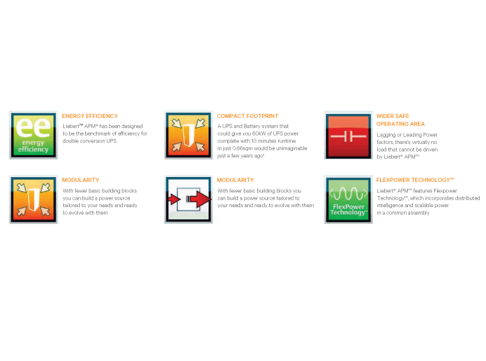 Liebert APM 是基于由维谛技术开发的可扩展电源平台的下一代 UPS 解决方案。 Liebert APM 与其他电源保护解决方案的不同之处在于其自适应电源管理器功能。 在同类产品中独一无二,Liebert APM 在单个机柜中提供完整的高效电源保护和分配,消除了两级配电的复杂性。 其智能和自适应能力,在数据中心行内管理电源,使其成为未来业务扩展的合适解决方案。它具有 FlexPower 技术,将分布式智能和可扩展能力融入到一个公共组件中。 它适用于中小型企业,态度快速增长:由于其架构,使 UPS 系统容量可以低至30kW,可以增长与业务高达600kW。