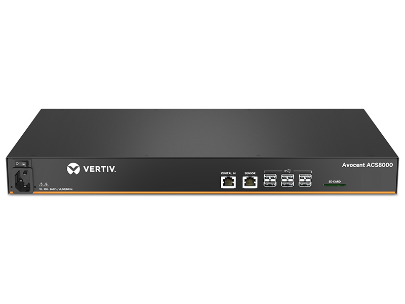 Avocent ACS 8000 系列高级控制台服务器继续书写了长盛不衰的故事,通过新型、全面的创新平台,融合如千兆光纤、USB 端口和传感器等新连接 特性。为 IT 专业人士和网络运营中心 (NOC) 人员提供从世界任何地点进行安 全、远程的数据中心和 IT 资产带外管理能力。基于双核 ARM 处理器架构与扩 展内存,优化的 Linux 运行系统和 DSView™ 管理软件,Vertiv Avocent® ACS 8000提供更佳性能、安全性和可靠性的带外管理解决方案