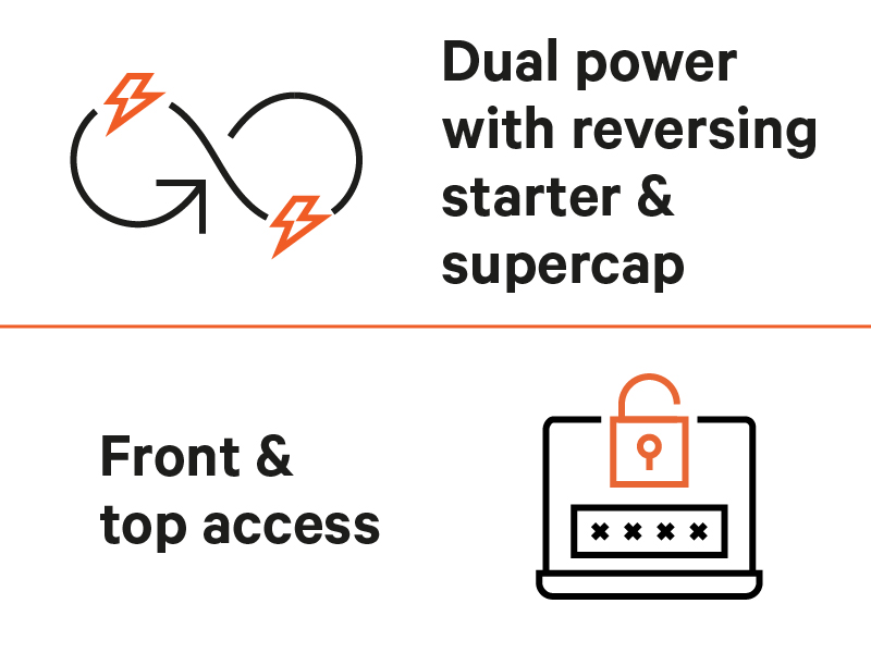 Dual power with reversing started and supercap for additional redundancy and quick start/restart