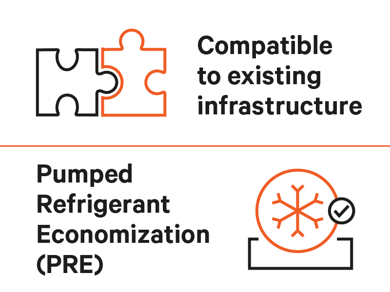 Pumped Refrigerant Economization (PRE) efficiency and reliably cools pods of high-density racks without the need for chilled water